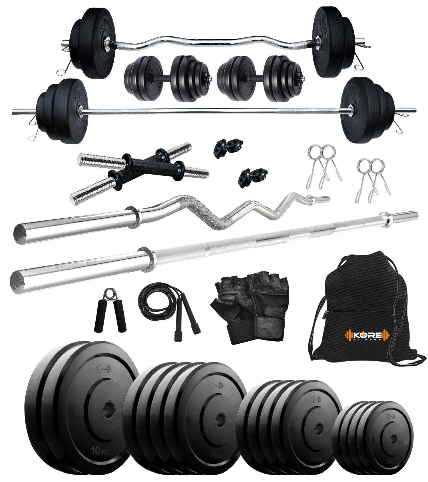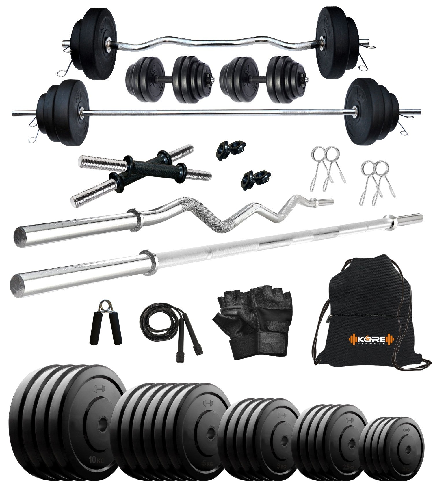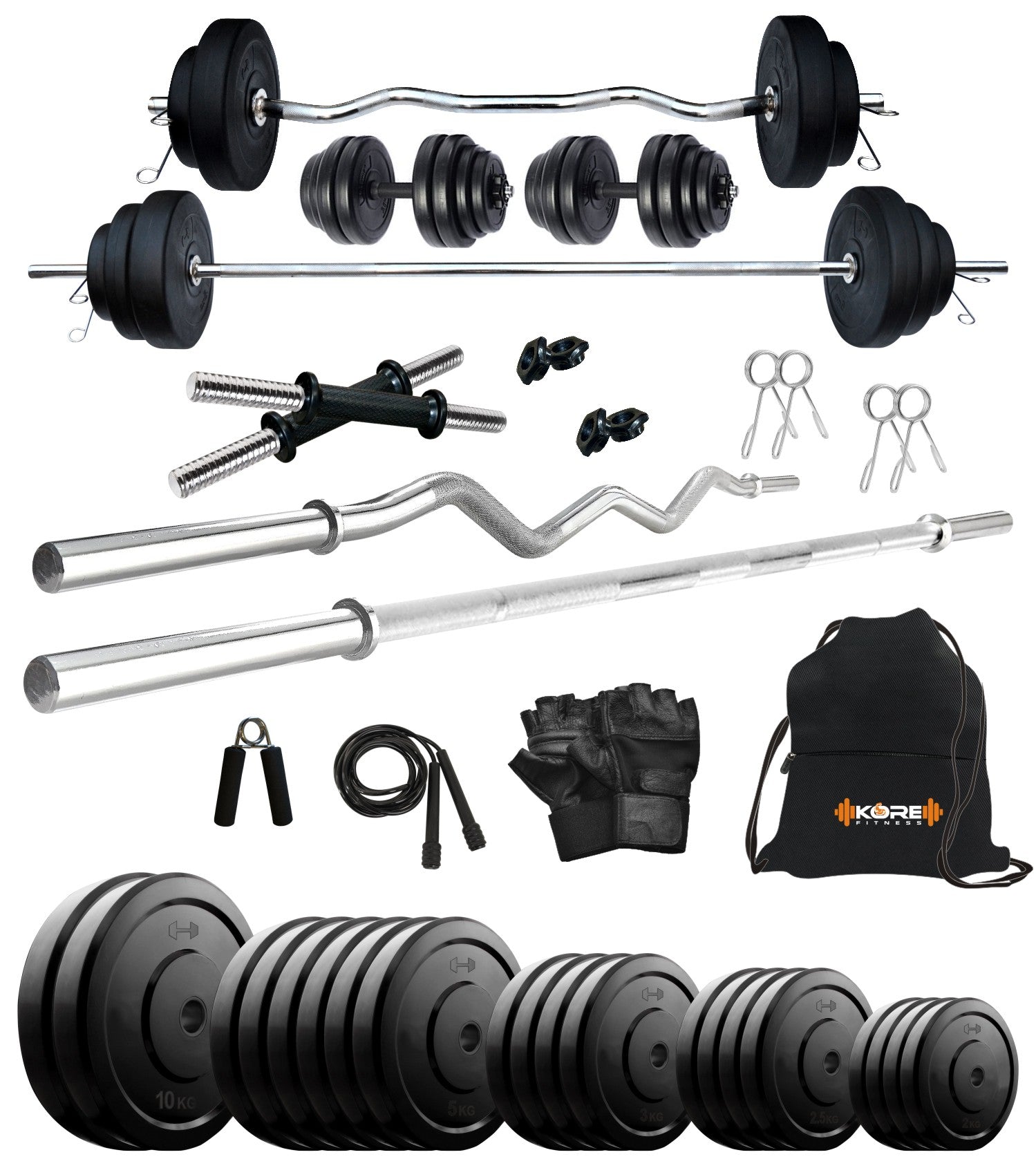 Kore 10-100 kg Home Gym Set with One 3 Ft Curl + 4 Ft Plain Rod and One Pair Dumbbell Rods with Gym Accessories (COMBO42)