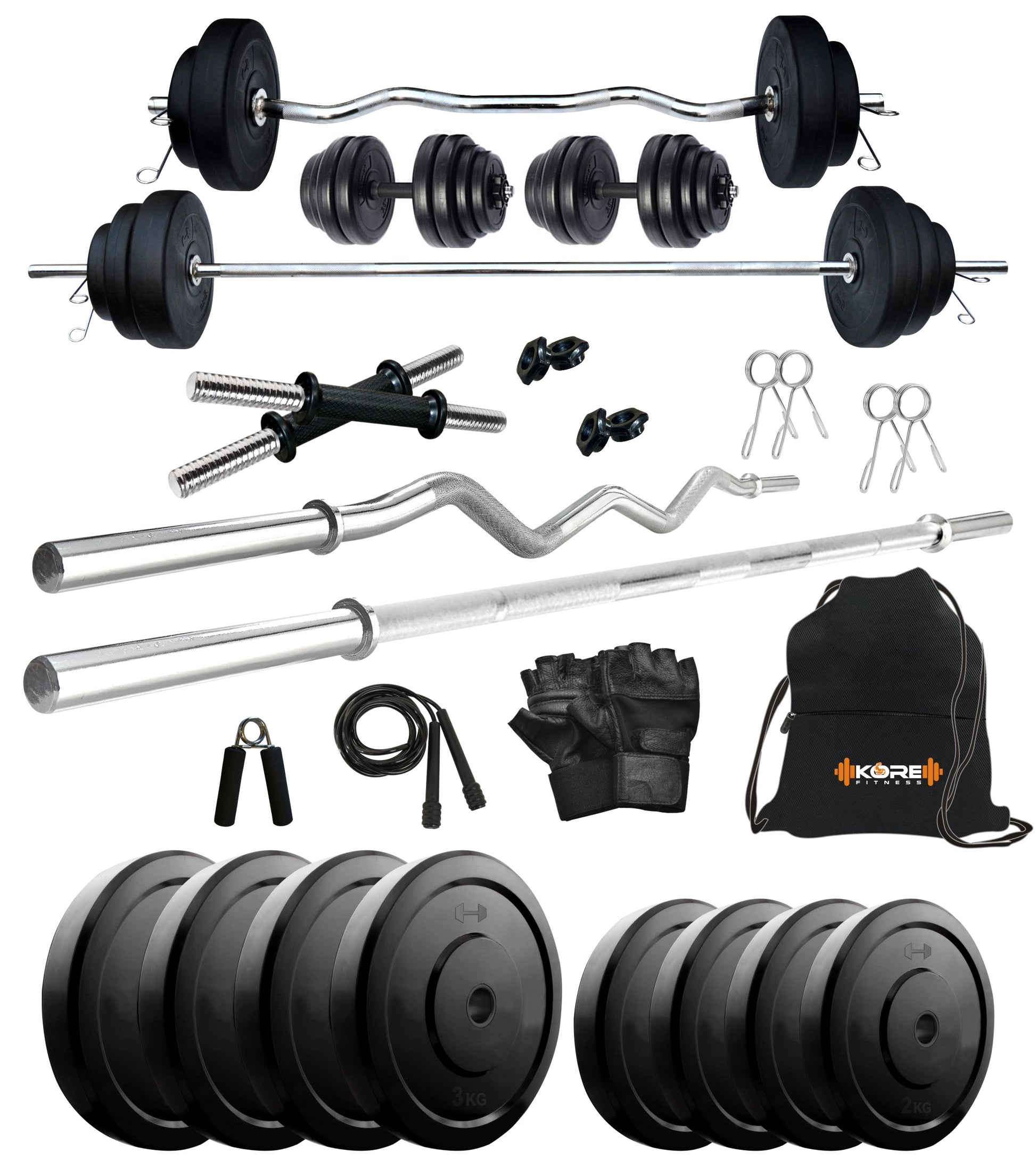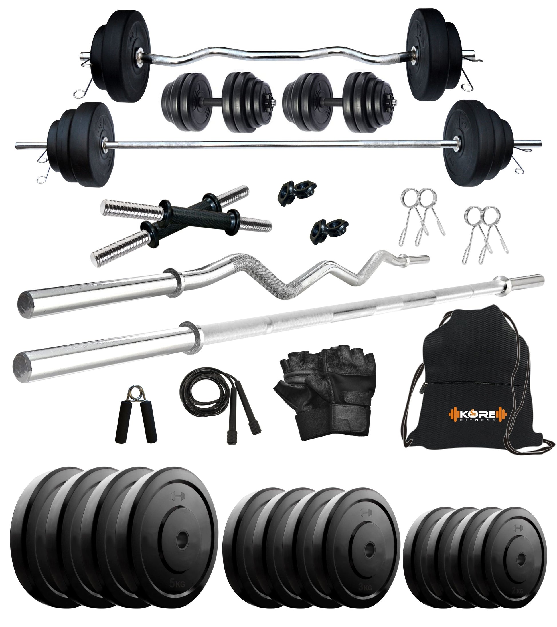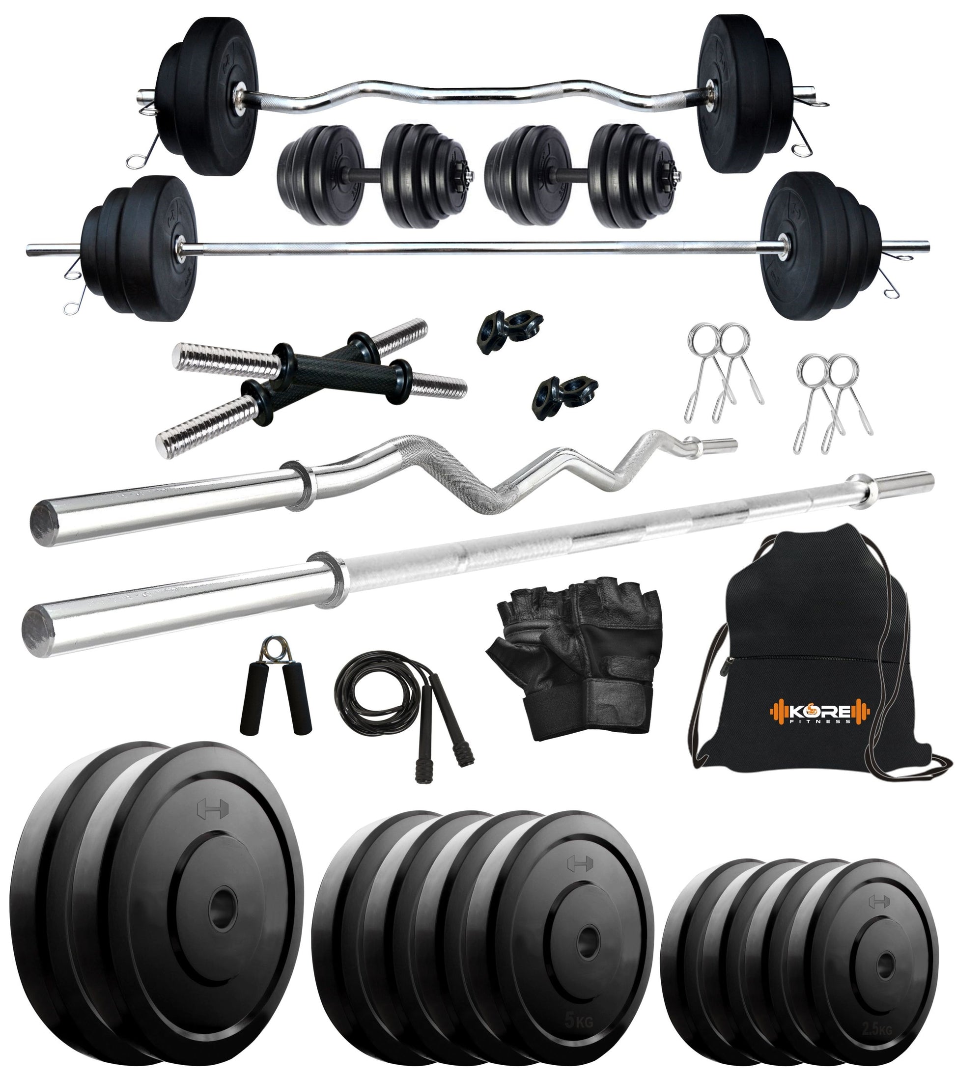 Kore 10-100 kg Home Gym Set with One 3 Ft Curl + 4 Ft Plain Rod and One Pair Dumbbell Rods with Gym Accessories (COMBO42)