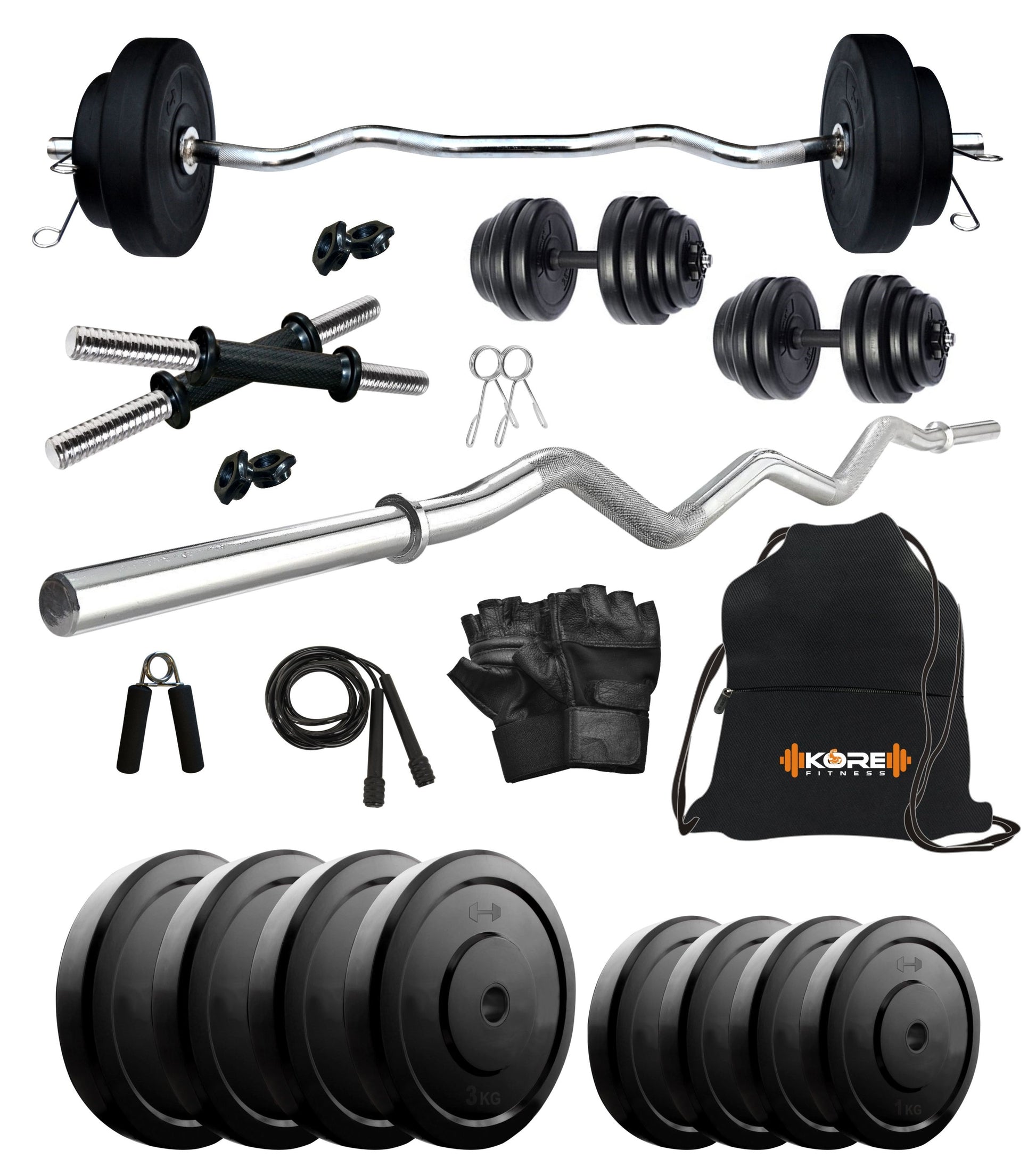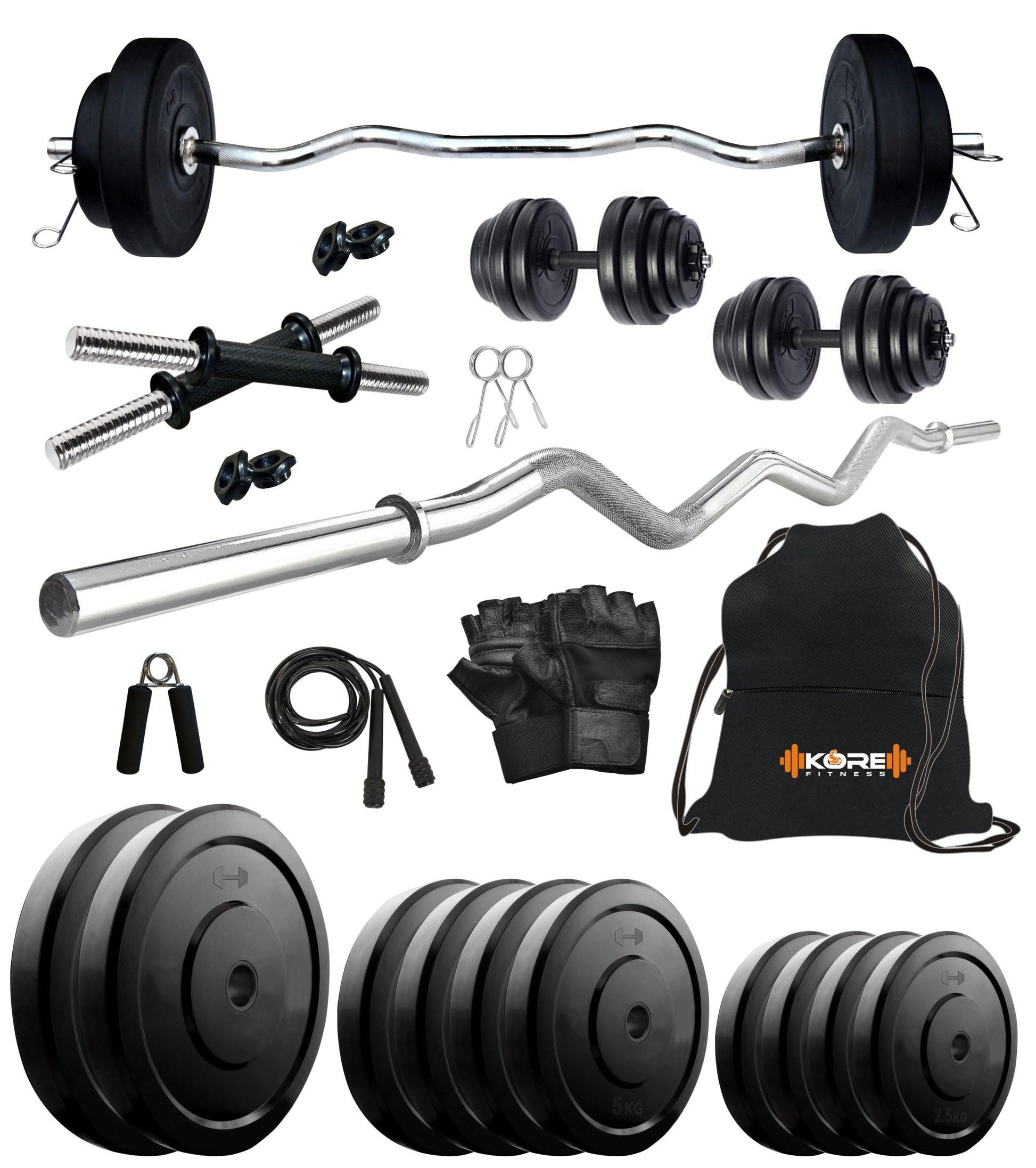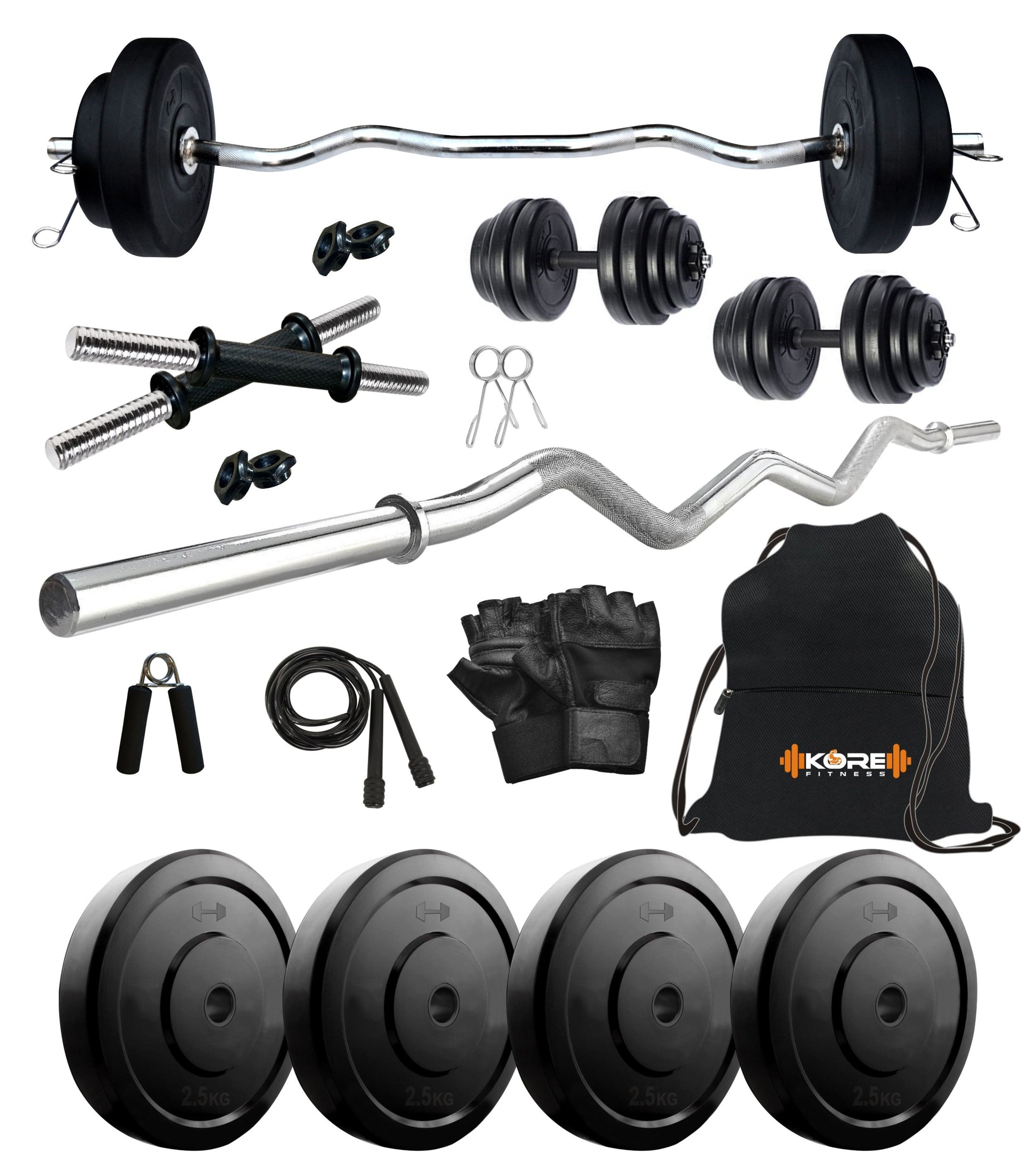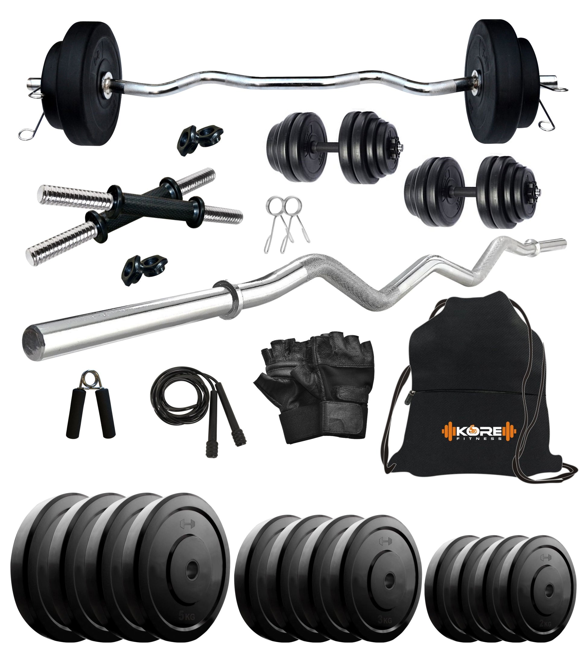 Kore 10-50 kg Home Gym Set with One 3 Ft Curl and One Pair Dumbbell Rods with Gym Accessories (COMBO3)