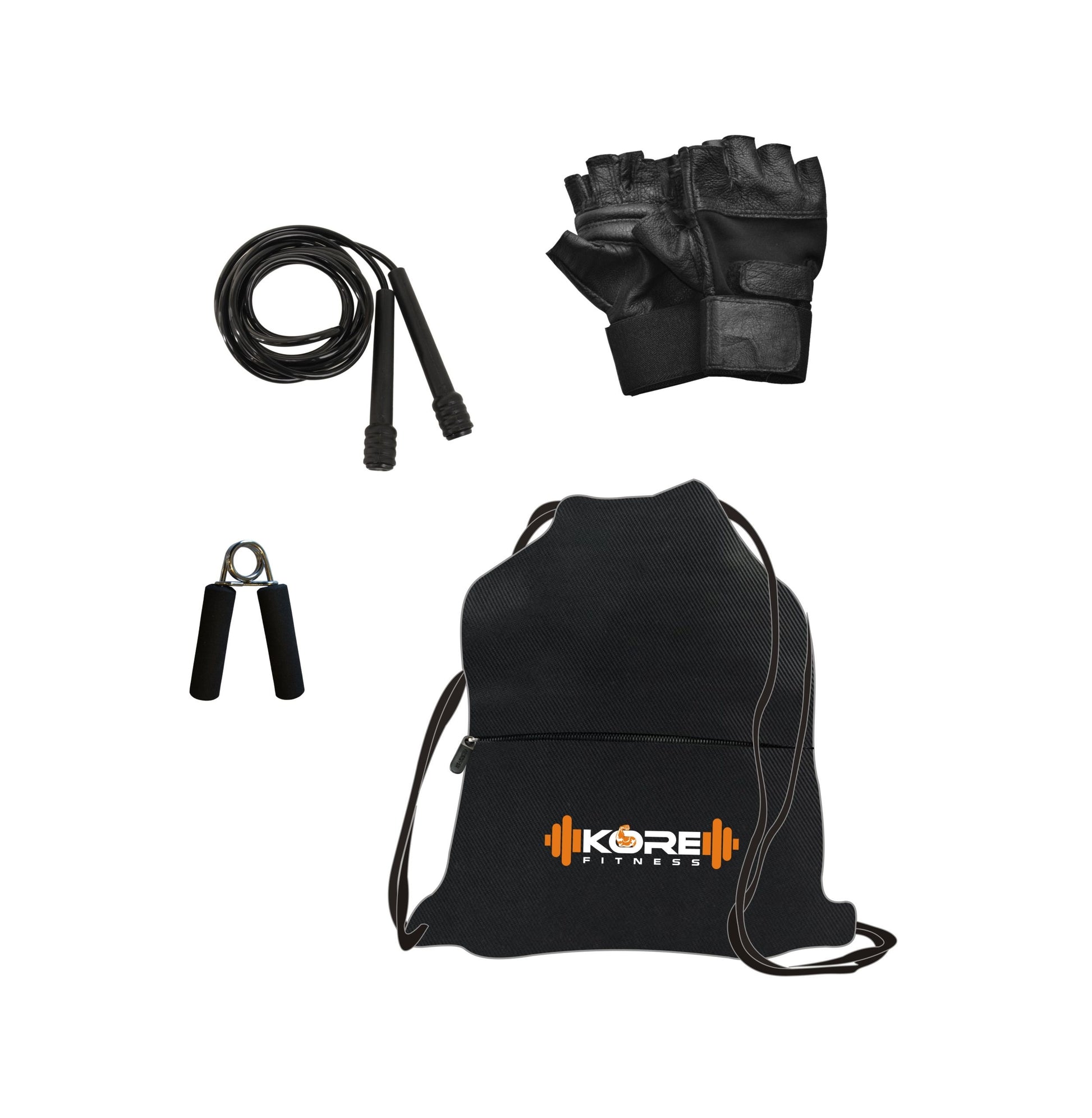 Weight Plates + 1 x 4 feet plain Rod (Shoulder / Bicep) + 1 x 3 feet curl rod + 2 x 14 " dumbbell Rods , 100% pure leather gym gloves + 1 Gym Backpack + 1 Skipping Rope + 1 Hand Gripper + 2 Locks and clippers comes with the rods,