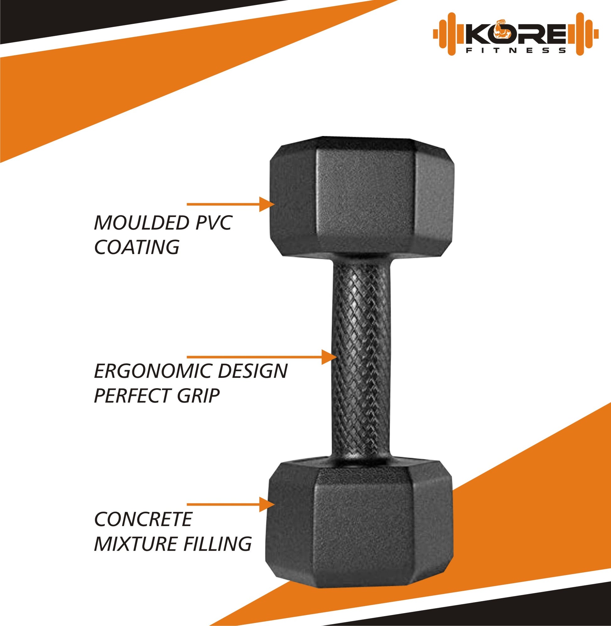Kore PVC 1-5 Kg Dumbbells Set and Fitness Kit for Men and Women Whole Body Workout (Fixed, Black) (DM-PVC-COMBO16-BLACK)