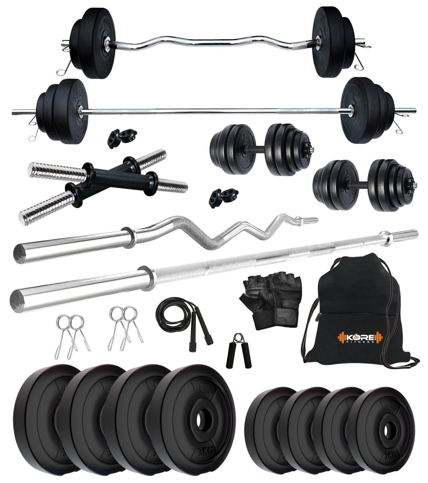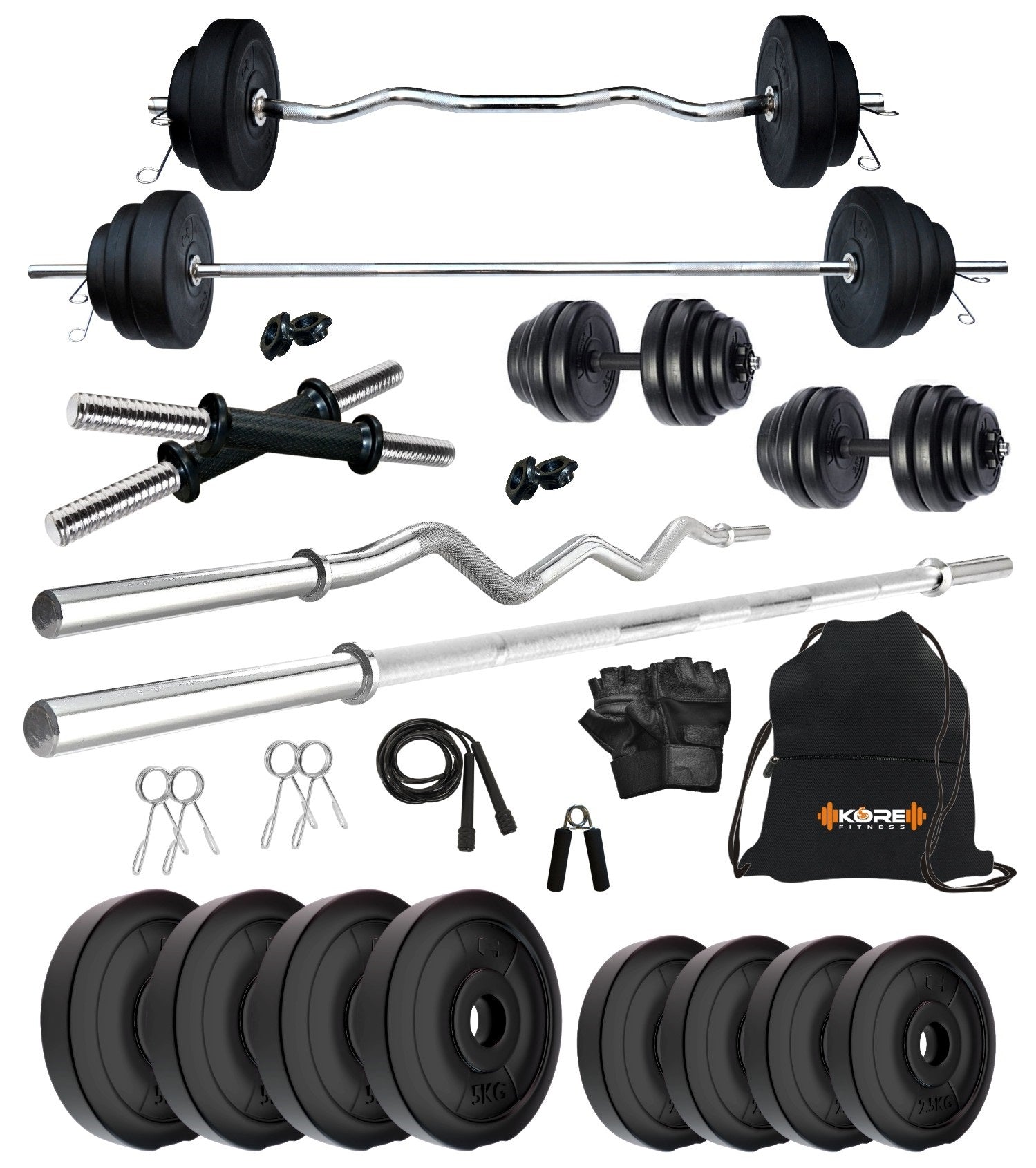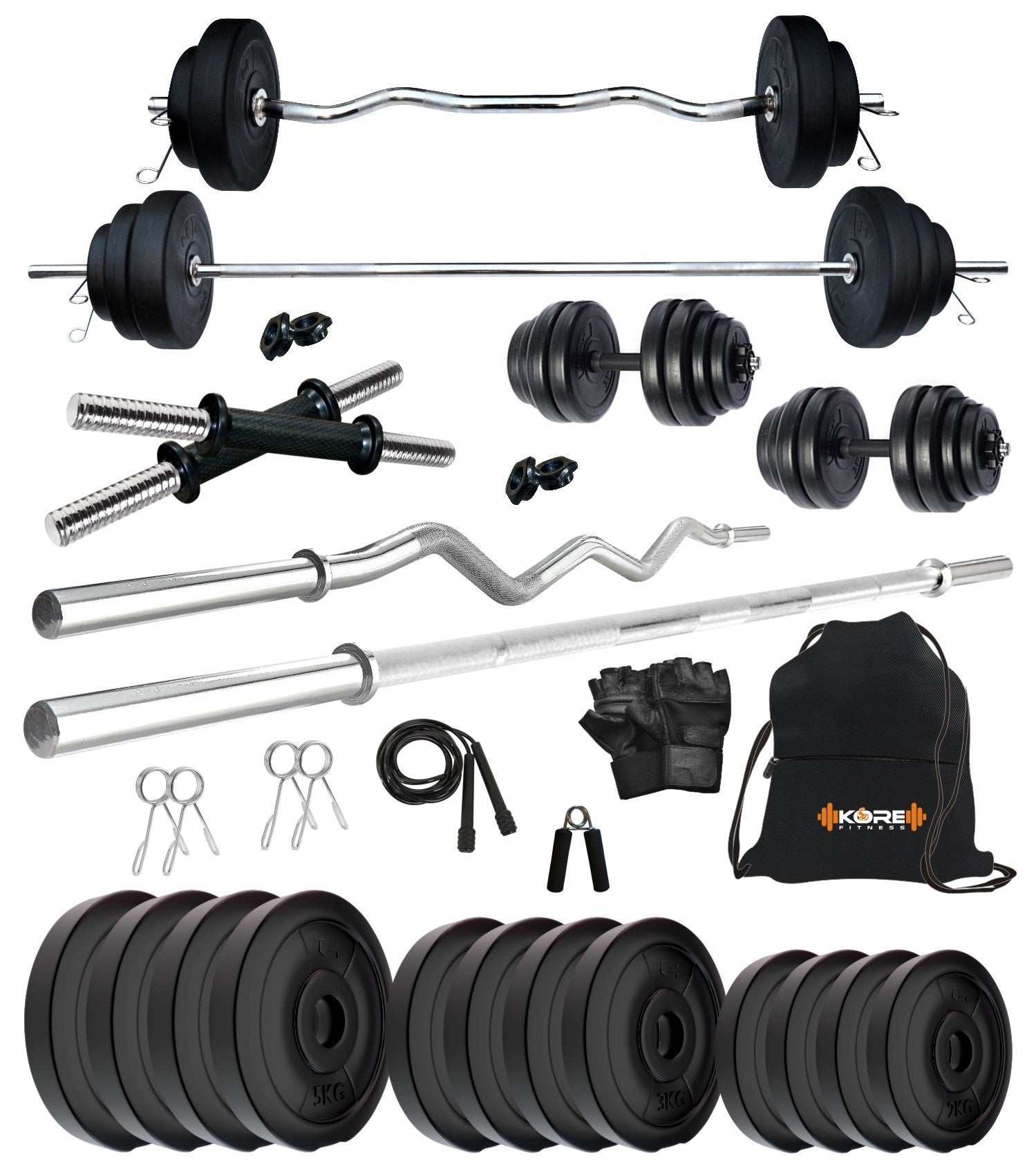 Kore PVC 10-100 kg Home Gym Set with One 3 Ft Curl + 4 Ft Plain Rod and One Pair Dumbbell Rods with Gym Accessories (PVC-COMBO42)
