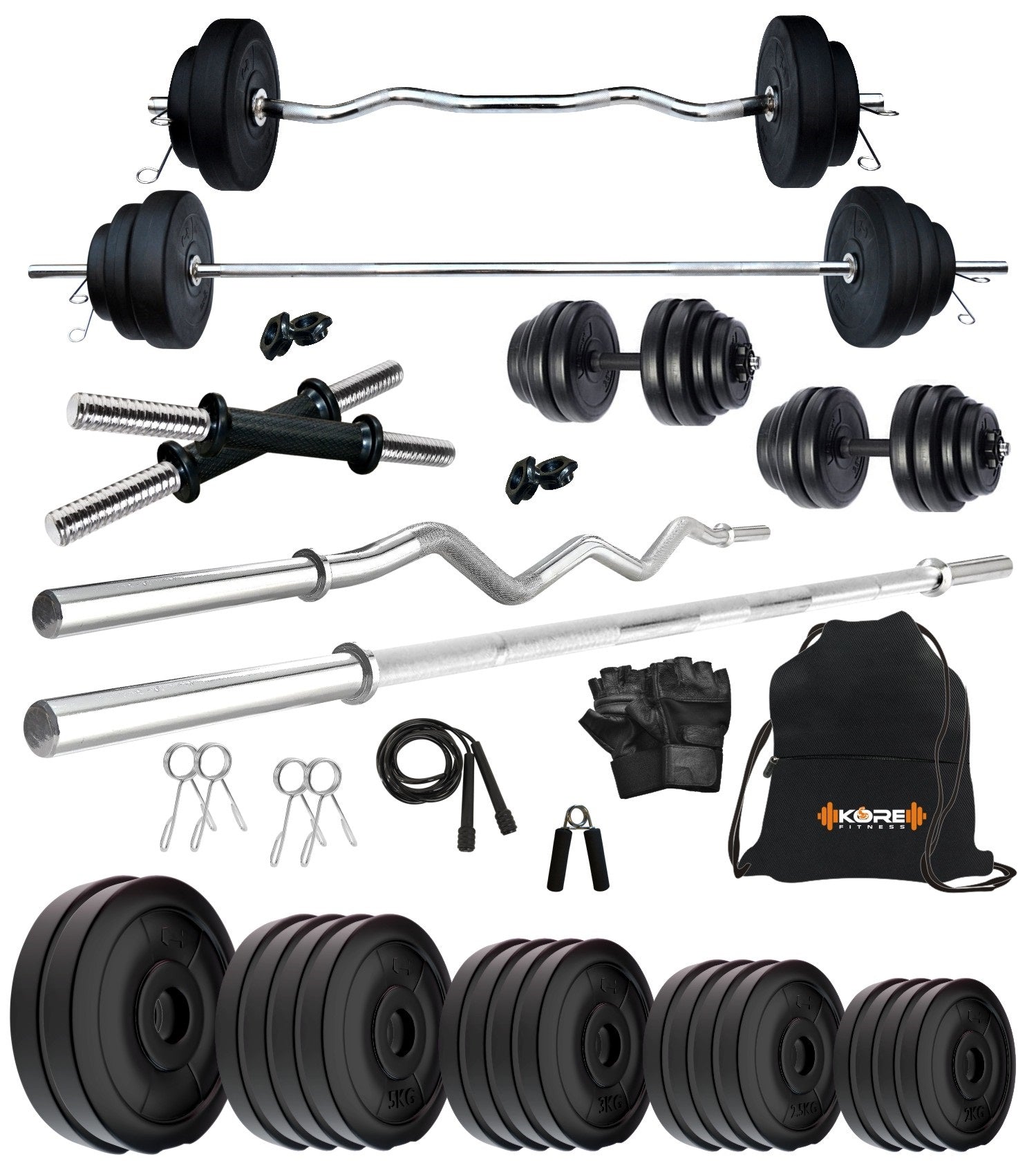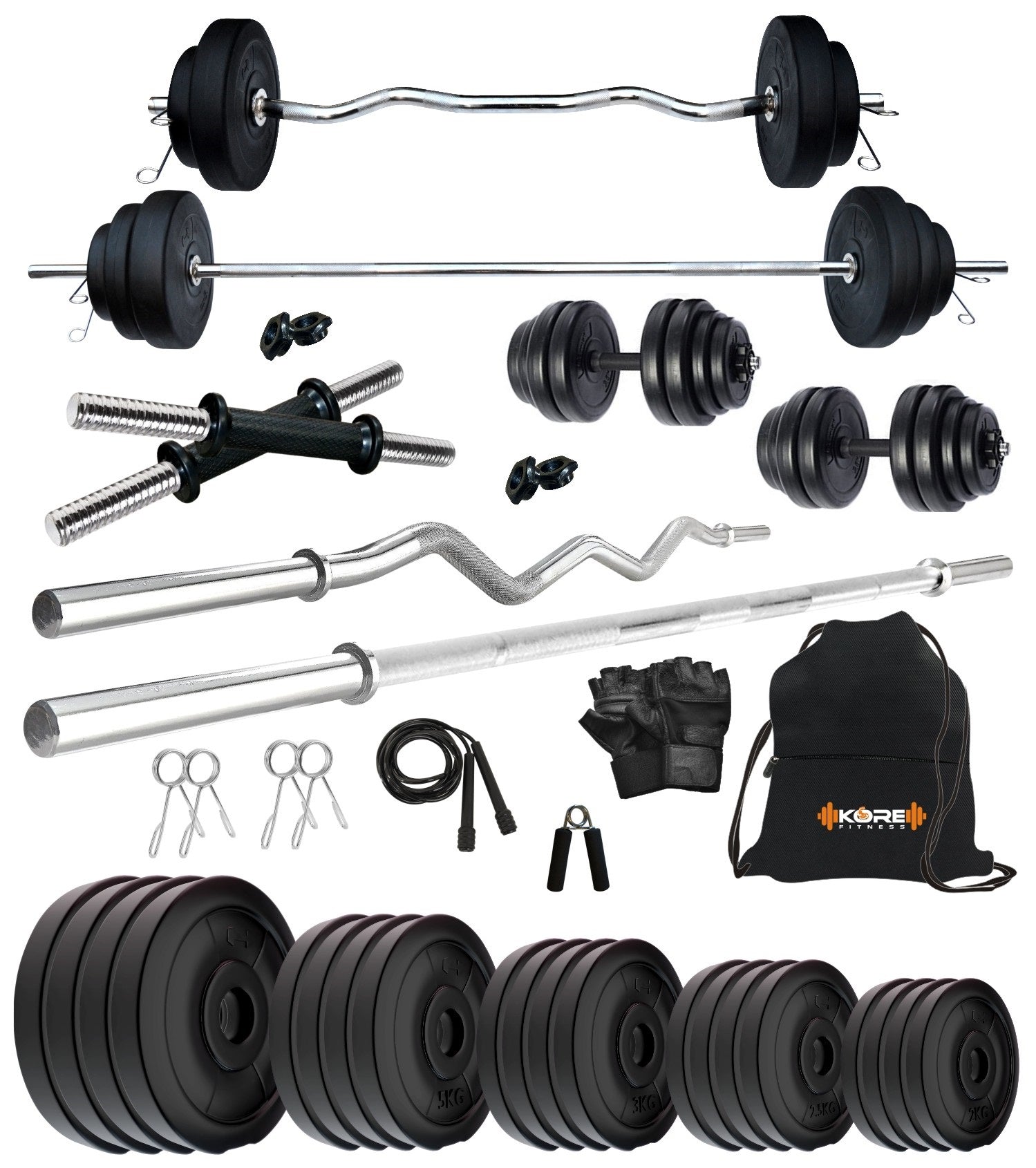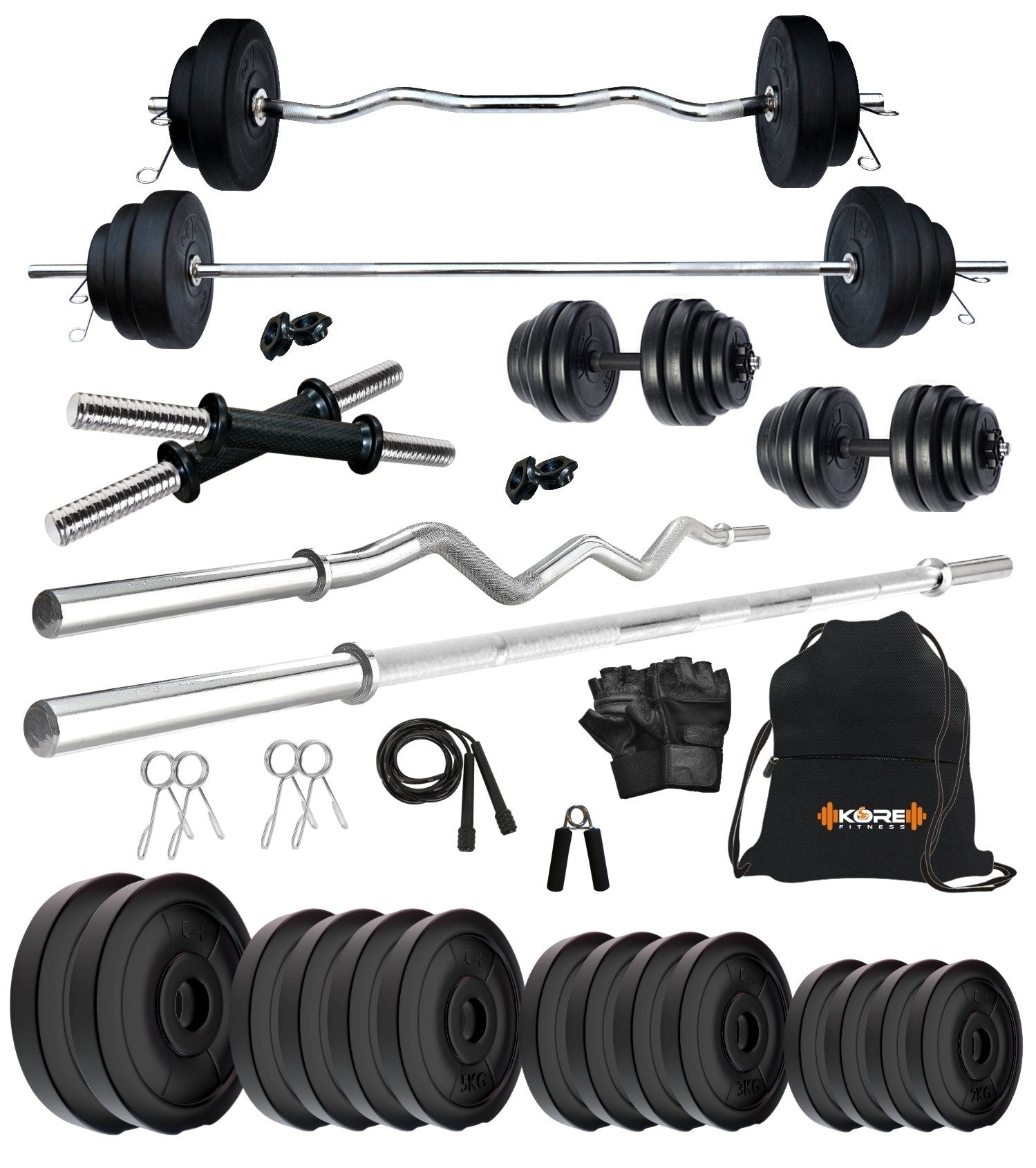 Kore PVC 10-100 kg Home Gym Set with One 3 Ft Curl + 5 Ft Plain Rod and One Pair Dumbbell Rods with Gym Accessories (PVC-COMBO2)