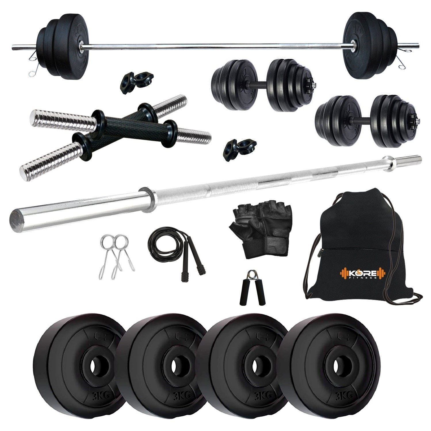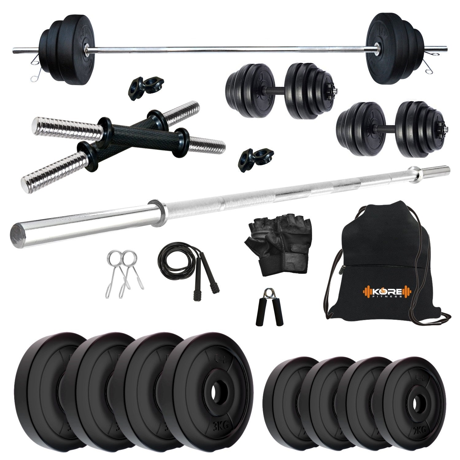 Kore PVC 10-50 kg Home Gym Set with One 3 Ft Plain and One Pair Dumbbell Rods with Gym Accessories (PVC-COMBO43)