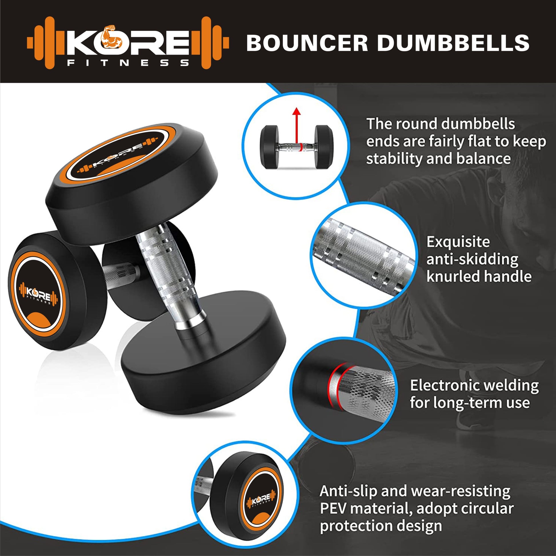 Kore Rubber Coated Bouncer 2.5-25 Kg (Set of Two) Fixed Dumbbells Home Gym Exercise Equipment for Men & Women, (DM-BOUNCER-COMBO16)